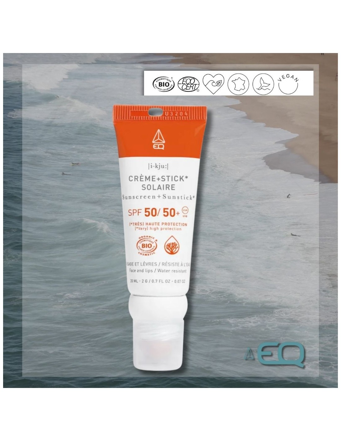Au format nomade et pratique, ce tube-stick offre une double protection UVA/UVB certifiée BIO : Crème Solaire SPF 50 haute protection + Stick Solaire SPF 50+ très haute protection. Une solution complète dédiée au visage et destinée à protéger et nourrir la peau et les lèvres soumises aux conditions extrêmes d’ensoleillement, sur l’eau et sur la neige. Le stick est intégré dans le bouchon vissé au bout du tube contenant la crème solaire. Formules 100% d’origine naturelle. Filtres 100% d’origine minérale. Non écotoxique pour le milieu marin.
